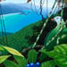 Top left clockwise; Dainty Tree Frog on Black Bean flowers, top right; Giant Green Tree frog, bottom right; Fig Fruit, centre right; Womcm Pigeon, centre bottom; Blue Quandong, left bottom; Red Eyed Tree Frog.