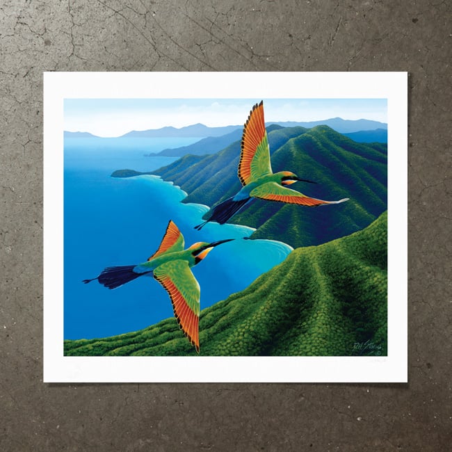 Rainbow Bee Eaters in Flight - Art Print